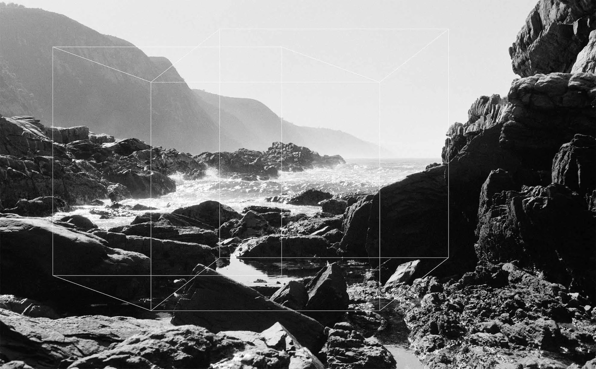 The landscape was captured on black-and-white film using an analogue camera during my road trip along the coast of South Africa. This image conveys the sublime beauty of nature, which I have enhanced with digital elements as part of my series The Control of Nature.